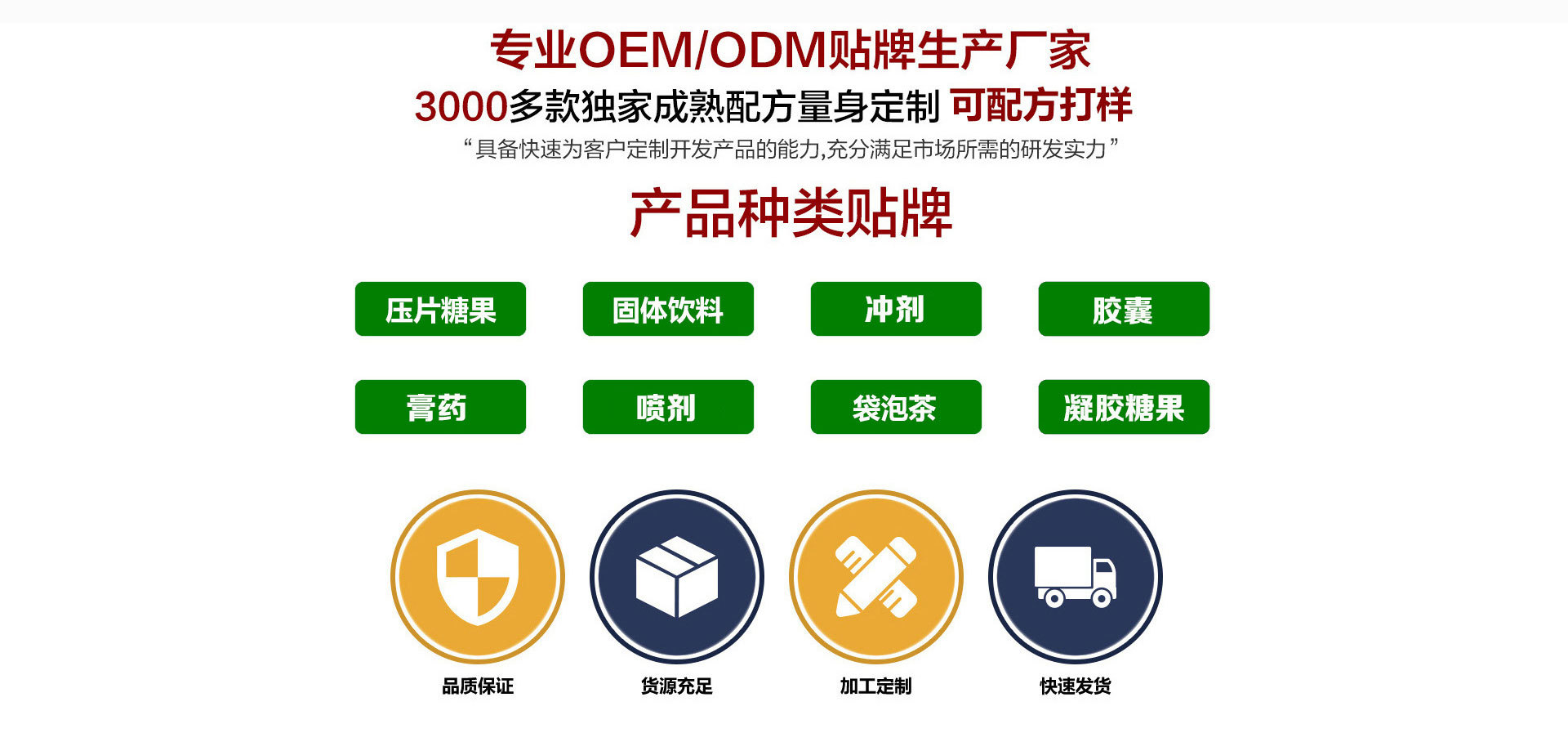 河南太木藥業有限公司是男性保健品、中老年補鈣品、減肥用品等產品專業生產加工的公司,擁有完整、科學的質量管理體系。河南太木藥業有限公司的誠信、實力和產品質量獲得業界的認可。歡迎各界朋友蒞臨參觀、指導和業務洽談。是一家專注于食品研發生產銷售及貼牌加工企業。公司專為廣大中國客戶提供OEM、ODM,產品代加工、產品大包服務。健倍士擁有現代化生產條件,公司設備配套齊全,生產能力強大,生產選料嚴格、工藝精湛、品質優良。 健倍士視食品安全為生命,形成了嚴格、有效、合理、可行的安全防線,為食品安全保障工作筑起一道堅實的無隙屏障。