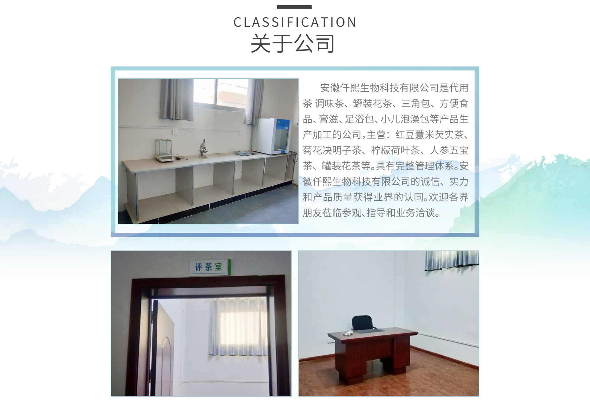 安徽仟熙生物科技有限公司是紅豆薏米芡實茶、菊花決明子茶、檸檬荷葉茶、人參五寶茶、罐裝花茶等產品專業生產加工的公司,擁有完整、科學的質量管理體系。安徽仟熙生物科技有限公司的誠信、實力和產品質量獲得業界的認可。歡迎各界朋友蒞臨參觀、指導和業務洽談。