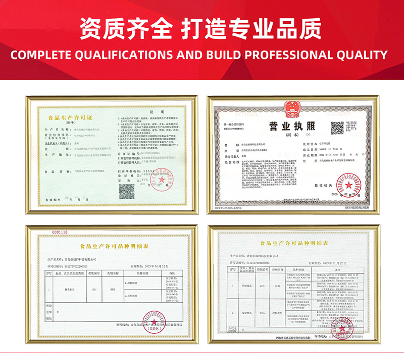青島佰福得科技有限公司于2006年12月建立,公司位于青島高新技術產業開發區內,擁月28.5畝工業園,已建成5層智能化辦公大樓和2200平術的食品認證的GMP生產車間,和800平米生物發酵及臨界生物提取車間。是一家集生物技術研制、醫藥原材料開發和食品生產于一體,具有獨立知識產權的新型高科技公司。具有多項獨立知識產權。現代化生產設備,質量控制手段嚴謹,擁有多條食品生產線,為公司快速、穩定、持續發展奠定了堅實的基礎。公司擁有韓國2條軟膠囊生產線、2條日本片劑生產線;粉劑生產線、顆粒劑生產線、硬膠囊生產線、口服液生產線等,硬膠囊生產能力達年產3000萬粒,粉劑年產960噸,顆粒劑年產960噸;可生產瓶裝、袋裝10ml、20ml、30ml、50ml、100ml口服液,同時配有三條自動包裝線以滿足食品和食品生產的需要。