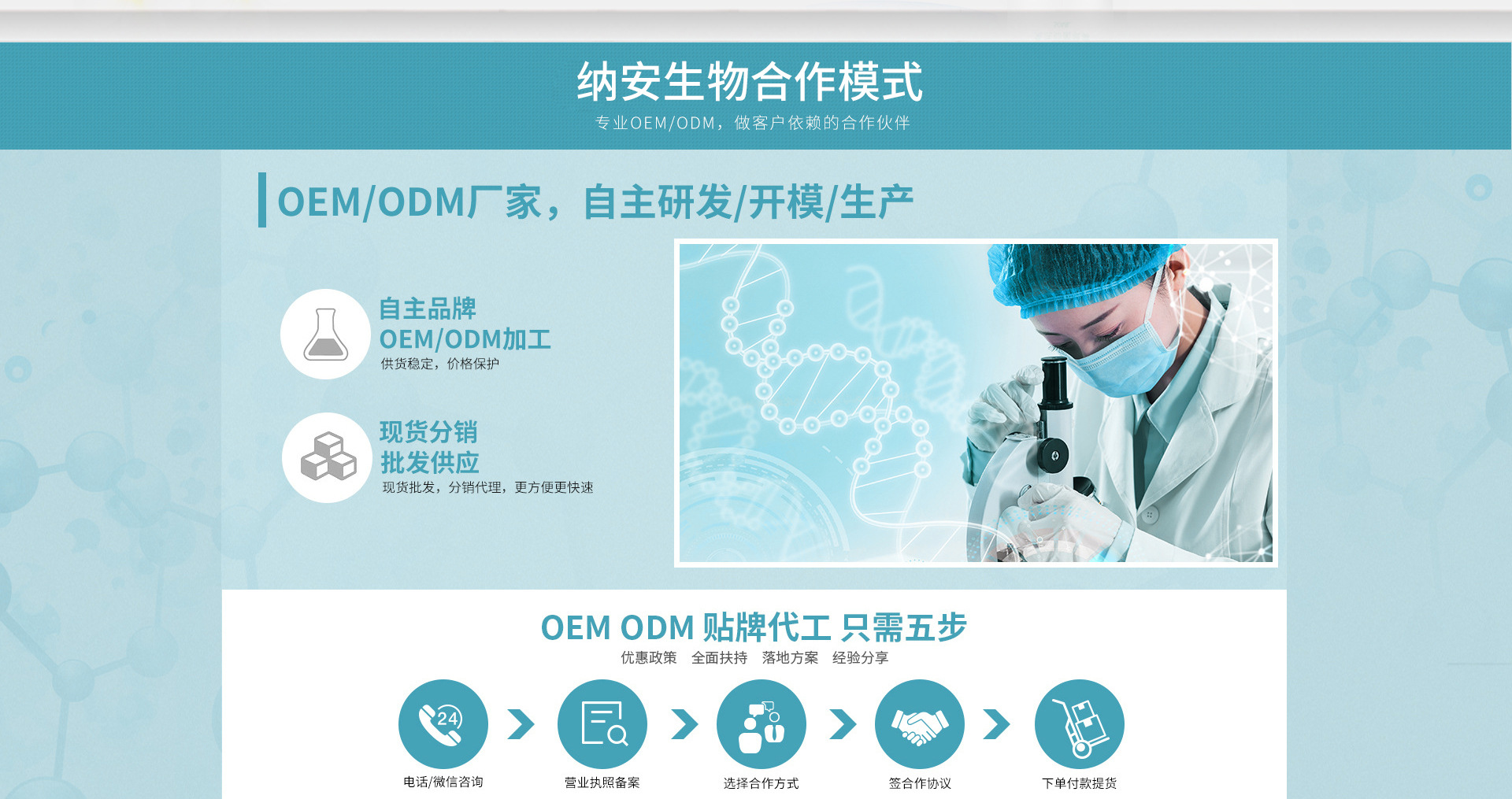 公司面積10000㎡,護膚品生產規模屬于大規模, 潔凈生產車間面積1700㎡、產品檢測中心面積333 ㎡、庫房面積1700㎡、動力車間面積253㎡。 公司配有專業的研發團隊,可做新產品、新原 料、新工藝開發和研究。目前已獲得化妝品生產許 可證,妝字號生產線已投產的有:面膜生產灌裝線、 乳霜生產灌裝線、洗面奶生產灌裝線、護膚水生產 灌裝線、精油生產灌裝線,沐浴露生產灌裝一站式 化妝品加工服務。 研發團隊12人,博士2人,研究生10人。生產質 量團隊專業人員27人,研究生3人,本科15人。