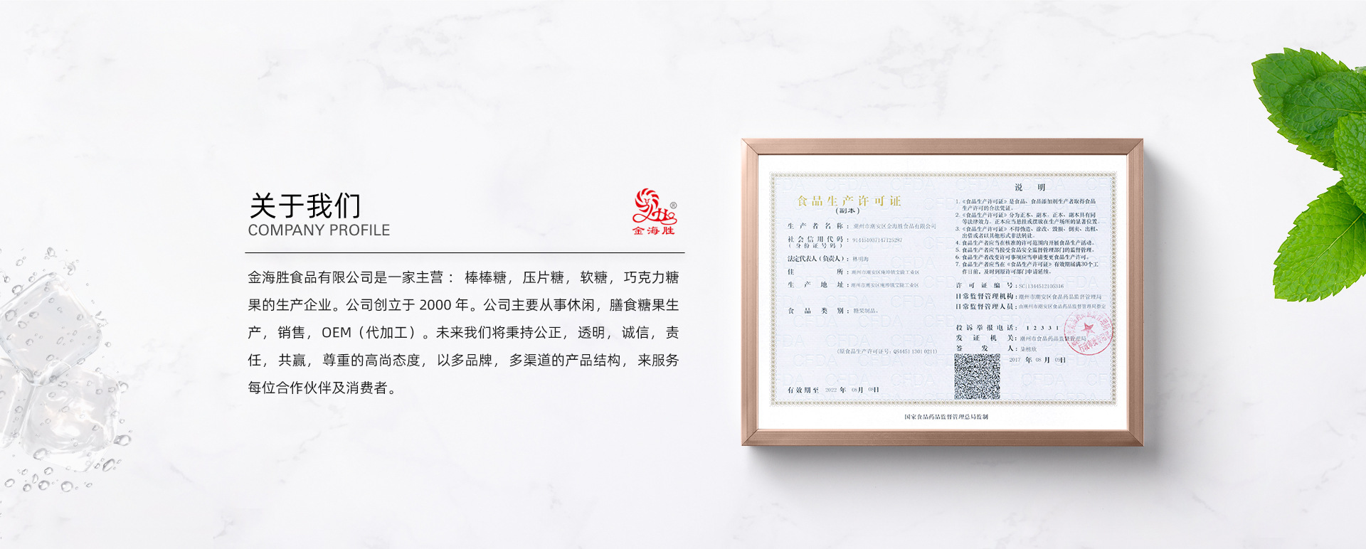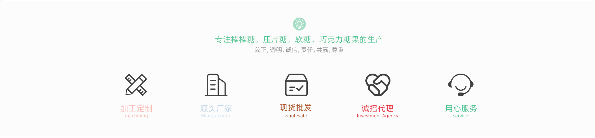 金海勝食品有限公司是一家主營:棒棒糖,壓片糖,軟糖,巧克力糖果的生產企業。公司創立于2000年。公司主要從事膳食糖果生產,銷售,OEM(代加工)。未來我們將秉持公正,透明,誠信,責任,共贏,尊重的高尚態度,以多品牌,多渠道的產品結構,來服務每位合作伙伴及消費者。