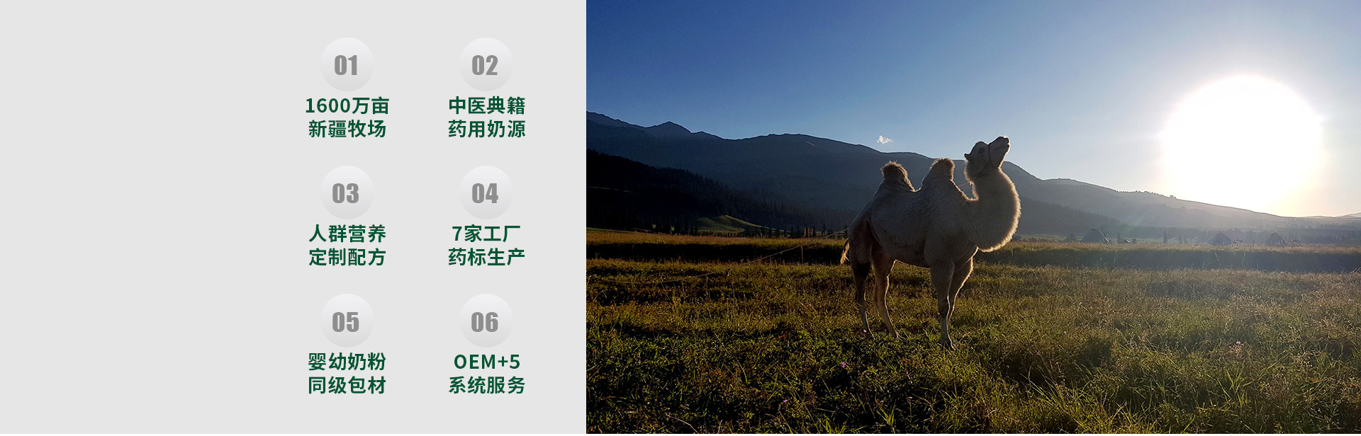 新疆眾享駝香乳業有限公司是中國特色乳制品全產業鏈企業,生產經營液態羊奶、羊奶粉、駝奶粉、馬奶粉、驢奶粉等特色乳品,擁有新疆和陜西2個奶源基地、7家產業鏈生產企業、1個全年齡段乳制品研發中心、1個綜合物流中心及營養乳制品、藥食同源乳制品2類產品體系。旗下生產工廠具有嬰粉生產資質,通過ISO\GMP\HACCP權威認證,具備全套乳制品檢測設備,是中國農科城重點企業。 新疆眾享駝香乳業有限公司是藥食同源羊奶粉類型開創者和國內規模頂尖的駝奶粉供應商,OEM生產服務達到100多個品牌,可為客戶提供原料、配方、生產、包裝、認證、物流等全套解決方案。歡迎各界朋友蒞臨參觀、指導和業務洽談。