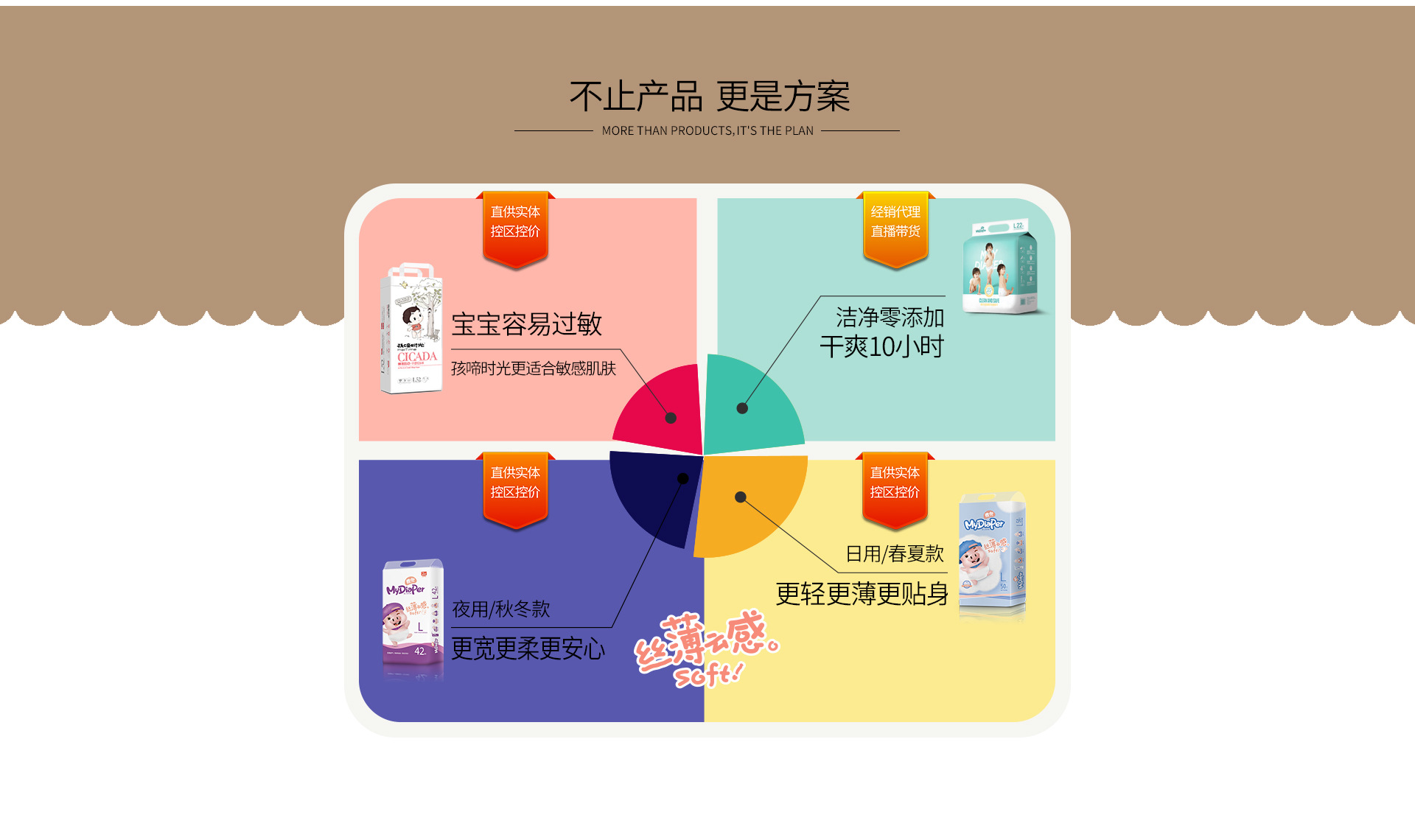 孩啼時光誕生至今始終以先進科學技術專注嬰幼兒健康用品行業,堅持以食品級標準做好嬰幼兒健康用品。多年來,我們遍尋全球頂級衛材,用挑剔的眼光甄選每道工藝,從媽媽的角度創設更高標準,致力讓育兒生活更美好! 公司主營的麥兜紙尿褲憑借穩定的產品質量和強大IP號召力,越來越受到市場喜愛。2017年底上市至2019年初,已入駐16省市1550家門店,累計售出40萬箱。 不止產品更是方案!麥兜紙尿褲根據使用場景開展產品研發,從消費者各自關注的緯度去分別滿足他們的需求,倡導科學育兒、合理省錢。 賣產品不如賣方案!麥兜紙尿褲采用廠商—終端—消費者渠道布局,實施線下、線上雙向同步發展,凡上貨終端均享全程無憂動銷扶持和不動銷便退貨的品牌承諾。 我們堅持以質量為企業生命、誠信為發基石、感恩為品牌靈魂,努力創造買方價值、致力成就合作伙伴! 歡迎各界朋友蒞臨參觀、指導和業務洽談。