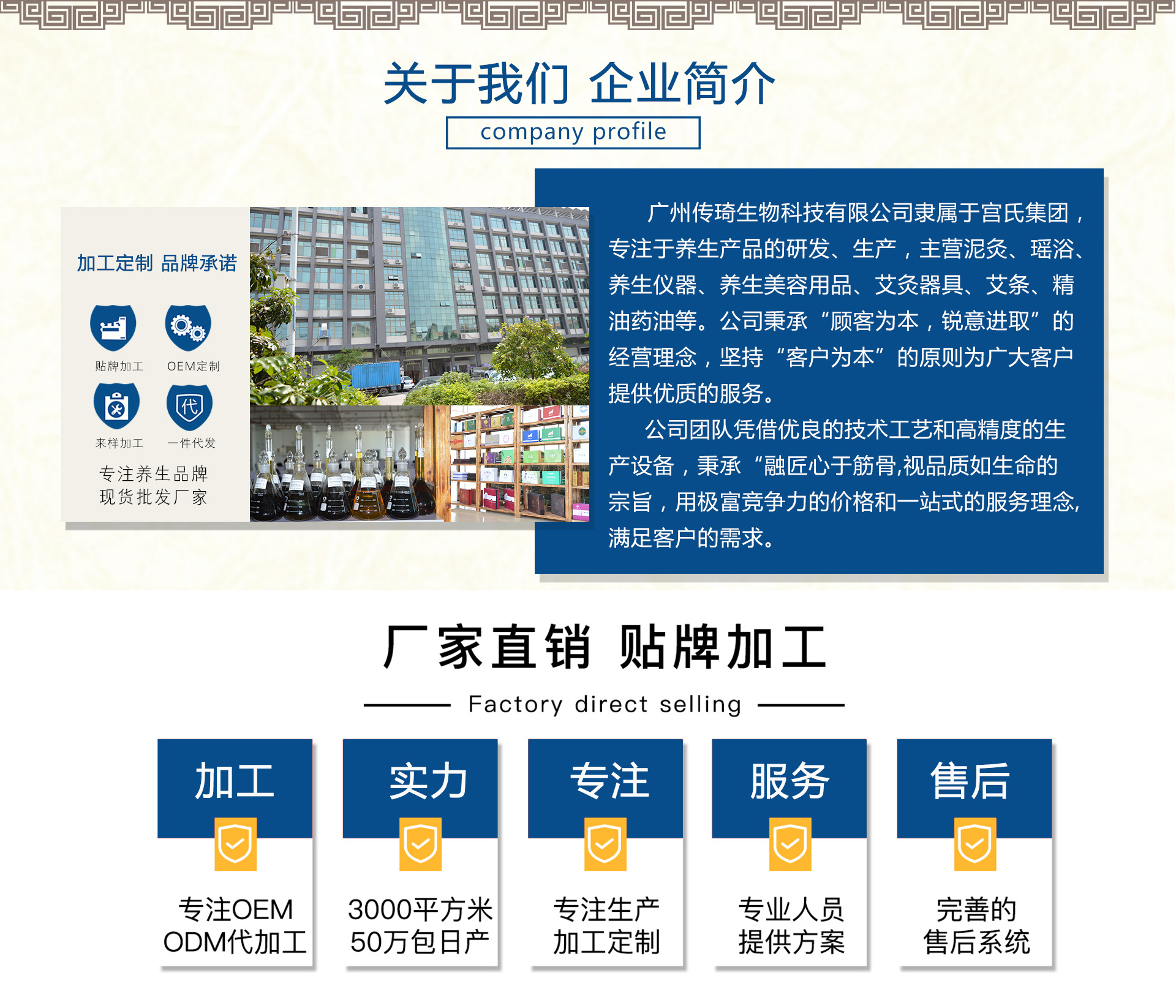 廣州傳琦科技有限公司主營泥灸、瑤浴、養生儀器、養生美容用品、艾灸器具、艾條、精油藥油等。公司秉承“顧客為本,銳意進取”的經營理念,堅持“客戶為本”的原則為廣大客戶提供優質的服務。 公司團隊憑借優良的技術工藝和高精度的生產設備,秉承“融匠心于筋骨,視品質如生命”的宗旨,用極富競爭力的價格和一站式的服務理念,滿足客戶的需求。