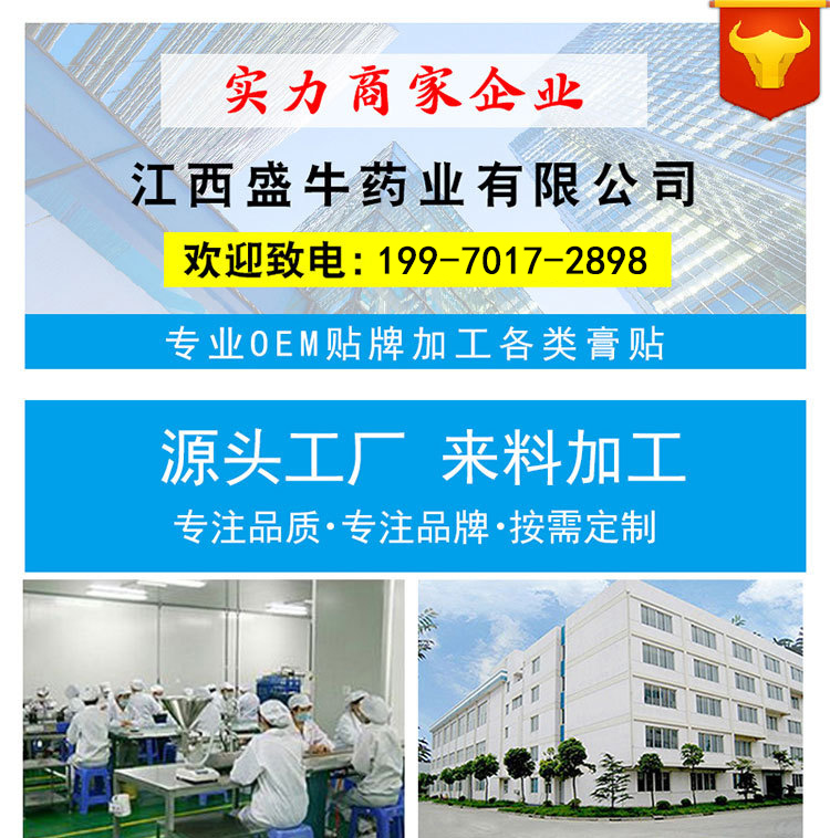 江西盛牛藥業有限公司(銷售企業) 江西百代藥業有限公司(生產企業)資質資質證件齊 全,擁有成熟的技術配方,過硬的技術力量,先進的生產設 備,專業的科技團隊,獨立的研發實驗室,專業對外 承接 OEM 貼牌生產,歡迎來電洽談業務,我們始終認 為客戶的成功就是我們的價值的體現,始終以一流的 產品質量,優惠的產品價格,全套的設計,令客戶滿 意的銷售服務,贏得廣大消費者的信賴與支持,我們 將一如既往的貫切“真誠合作,誠信雙贏”的經營理 念與你攜手再創輝煌。盛牛藥業承諾:做人受人尊敬 的企業,做令人放心的產品,為人們的健康發展做出 更大的貢獻!忠心感謝新老客戶對我公司的信賴,我 們將會以更好的服務,更優質的產品回饋社會。相信 你我牽手定會取得雙贏,走的更遠。