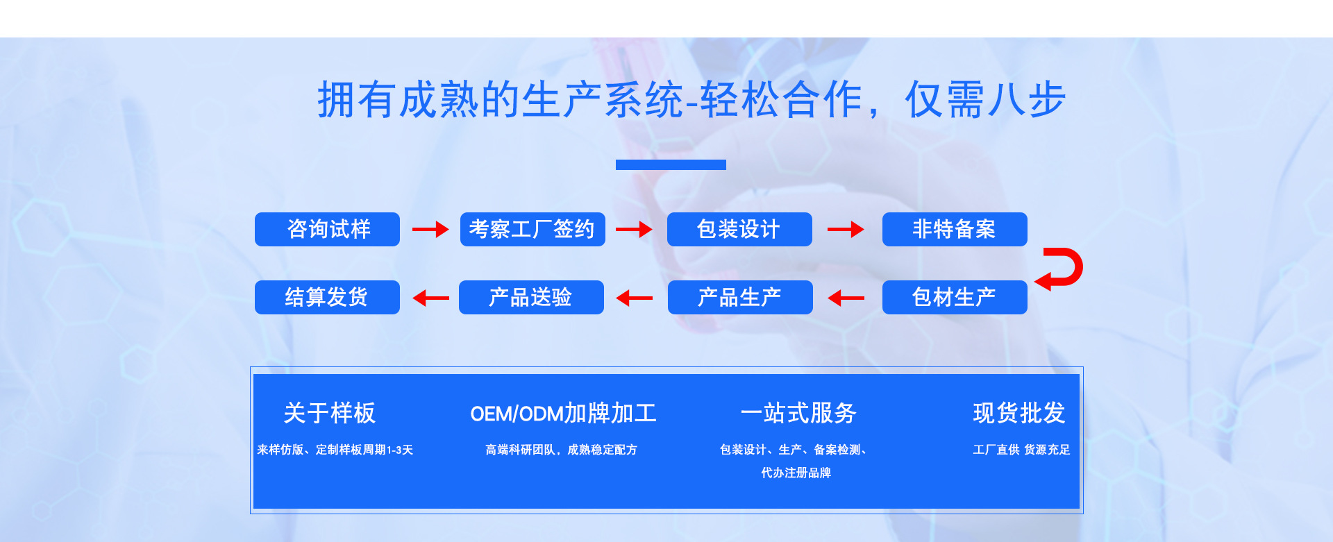 廣州家愛生物科技有限公司(簡稱:家愛生物科技)是一家集護膚類/女性私密類/護發類/嬰幼兒專用洗護類/酵素食品類/養生類等研究、開發、生產及銷售于一體的中高端化妝品/私密研發生產高新技術企業、公司以信譽第一、品質第一為追求,隨時掌握國際化妝品/私密/洗護產品的新動向,并以通力合作,長期發展為宗旨,針對客戶的需求,從事化妝品/私密/洗護產品的OEM/ODM貼牌加工、開發、設計生產的一站式服務.公司長期以來對各種膚質和皮膚特點的探研,成功地研發出了一系列日化終端化妝品品牌。 公司現投資兩座占地面積均超20000平方米的化妝品生產工廠.工廠完全達到國際化生產企業標準,環保舒適的現代化GMP生產車間。實驗室原料存放間,乳化車間,灌裝車間,內包材存放車間和更衣室均達到10萬級空氣凈化標準,其它區域采用30萬級空氣凈化標準,能有效把空氣中≥0.5PM塵粒數/立方米控制在≤3500000≥PU塵粒數/立平方米控制在≤2000.沉降菌每平方10個以內,家愛生物科技提供國際高端生物基因工程技術。