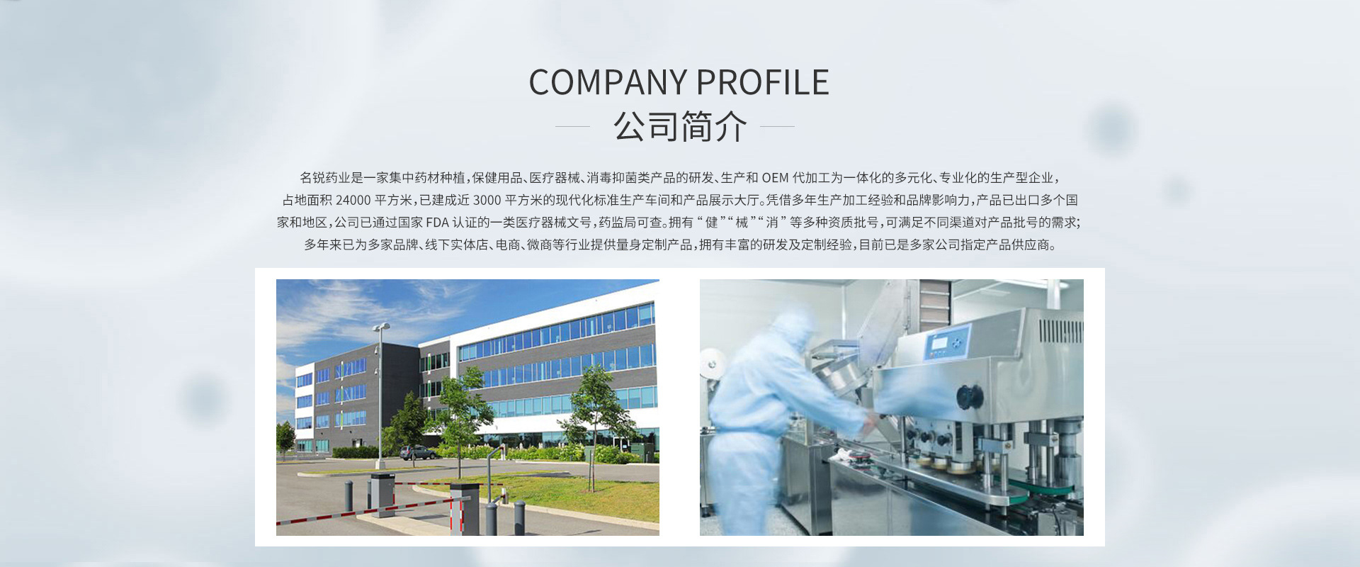 河南名銳藥業有限公司成立于2013年,坐落于中國中醫藥發祥地之一,藥都之城----禹州,公司專注于人類健康事業,是一家老字號、非遺、結合現代技術綜合性生產企業。主要生產醫療器械一類、二類、健字號、械字號、企業標、準團體標準、消毒用品等。核心產品高達三十多種。公司始終以核心的專項技術、精湛的研發團隊、領先的生產技術、具有競爭力的產品價格以及高效優質的服務贏得了國內外客戶的信賴和支持。公司位于素有藥都之稱的禹州,自古享有“藥不經禹州不香,醫不見藥王不妙”的美譽。禹州歷史悠久的中醫藥文化和優美和諧的生態環境為名銳藥業的發展提供了得天獨厚的有利條件。公司產品種類齊全,覆蓋面廣,產品種類與全新互聯網相結合,與電商平臺、直播帶貨、美容店、養生會所、醫藥公司、連鎖藥店、醫院等建立長期友好的合作關系。 多年來,名銳致力于醫療大健康事業近十年,不斷創新,現以得到廣大合作商的認可和好評,合作電商達到300多家